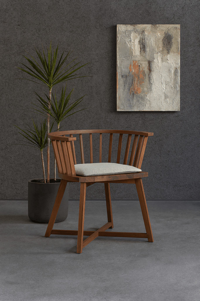 The Arundel Armchair is a study in refined proportion and sculptural clarity. Crafted in solid wood, its semi-circular spindle backrest and splayed legs strike a balance between tradition and modern minimalism. With its distinctive curved form and finely joined frame, Arundel offers both architectural presence and inviting comfort.