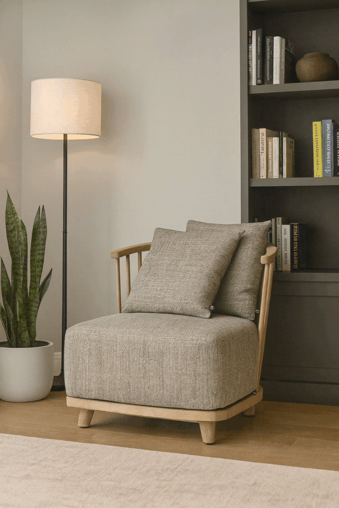 With its low profile, soft cushioning, and warm oak detailing, Ascot is versatile enough to serve as a lounge chair, reading chair, or occasional accent. The interplay of natural timber and tactile upholstery reflects Nala’s philosophy of timeless design — durable, comfortable, and crafted with integrity.