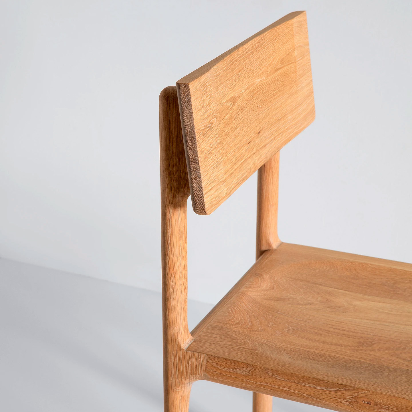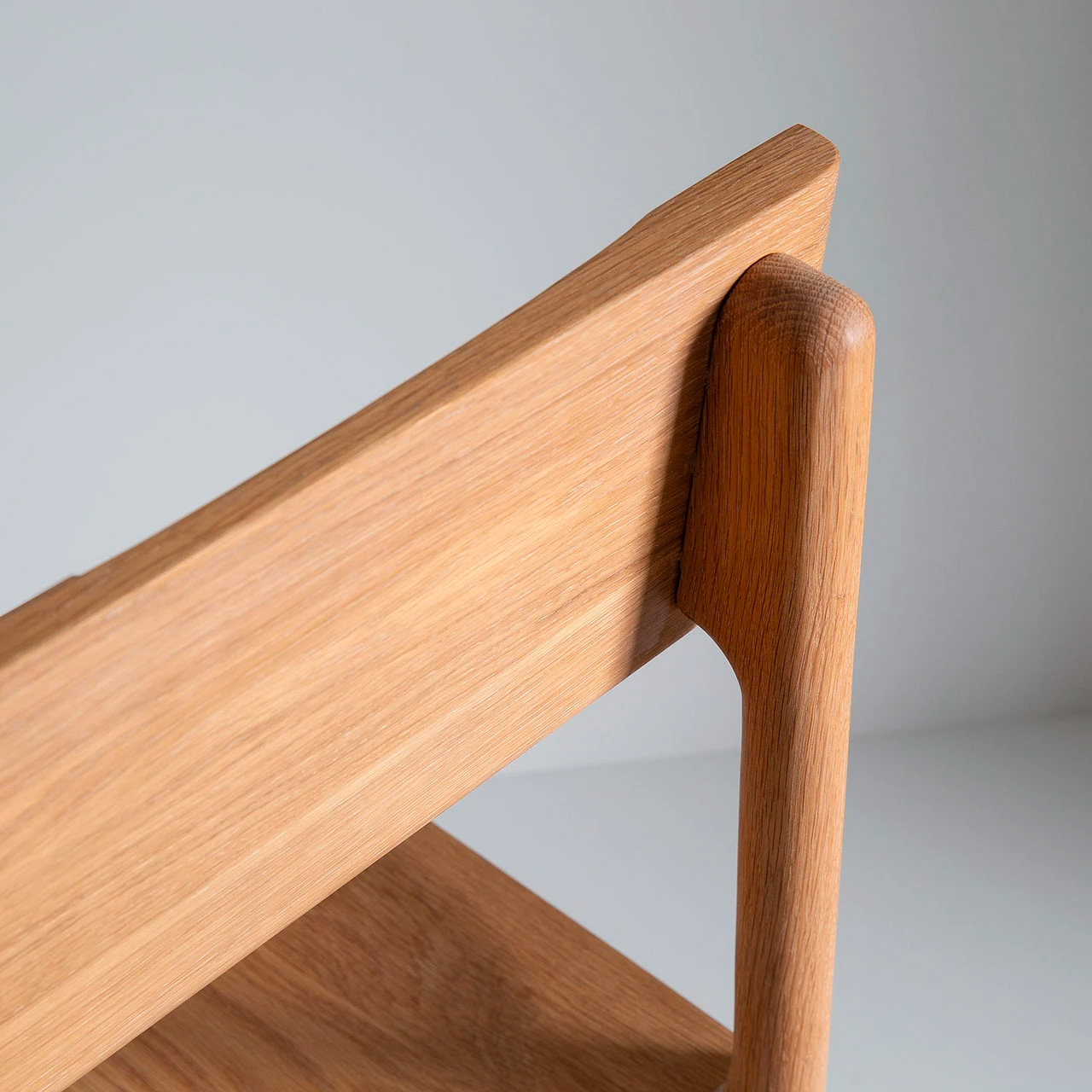Constructed from solid French oak, the Berkley Chair features a gently contoured seat and backrest for natural comfort. The joints are reinforced using traditional mortise-and-tenon joinery, ensuring enduring stability. A low-sheen oil finish brings warmth to the surface while maintaining a smooth tactile feel.