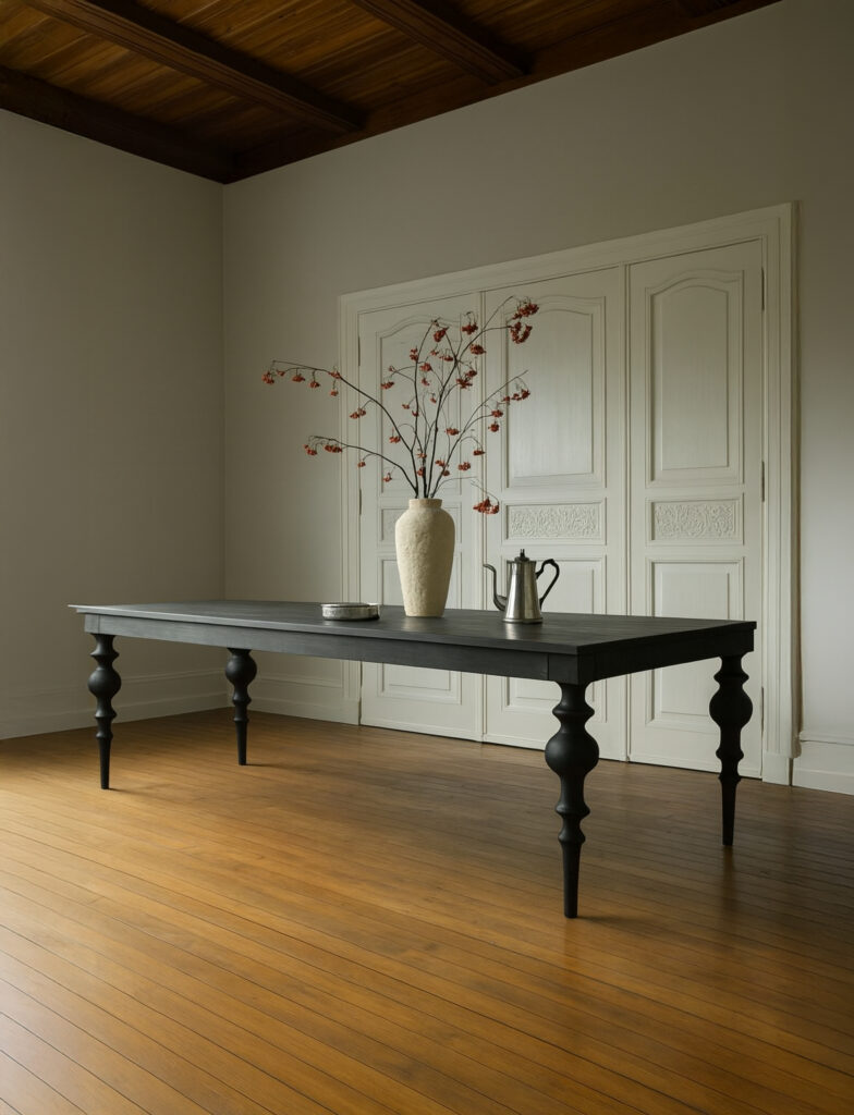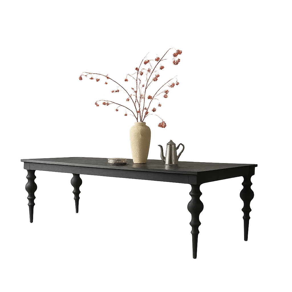 The Chatsworth Dining Table is a celebration of heritage craft reimagined for modern living. Its defining feature is the sculptural turned legs, bold in profile yet elegant in stance, supporting a refined rectangular top. The silhouette carries echoes of tradition but is rendered with a contemporary edge, giving Chatsworth presence in both classic and modern interiors.
