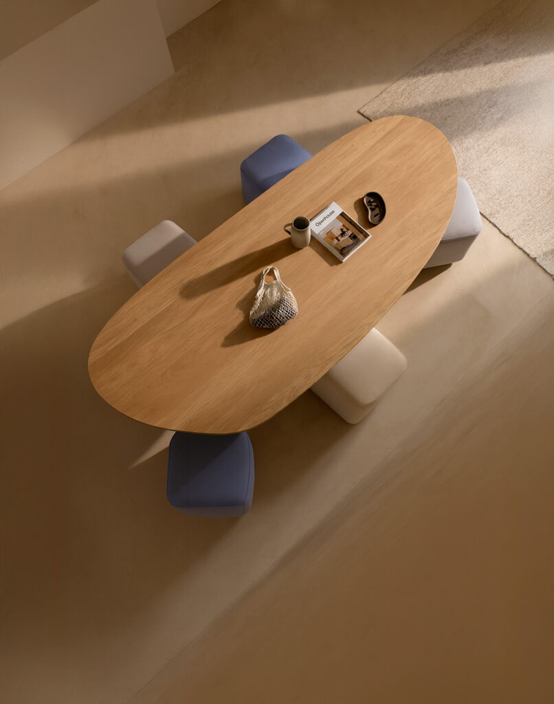 Built to anchor both dining and meeting spaces, Devonshire is an exercise in proportion and restraint. Its softly rounded form enhances flow within a room, while the seamless joinery expresses artisanal precision. Every line has been considered to create a piece that feels timeless and grounded, equally at ease in a modern apartment or a minimalist interior defined by natural materials and light.