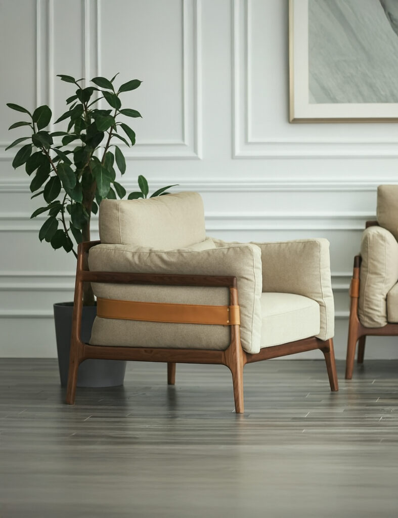 The Grosvenor Armchair is a study in proportion and poise, designed to bring modern comfort into a timeless silhouette. With its tailored upholstery, slim frame lines, and gently curved backrest, Grosvenor achieves the rare balance of elegance and ease. The armchair’s form is architectural yet soft, allowing it to stand alone as a statement or integrate seamlessly into a curated interior.