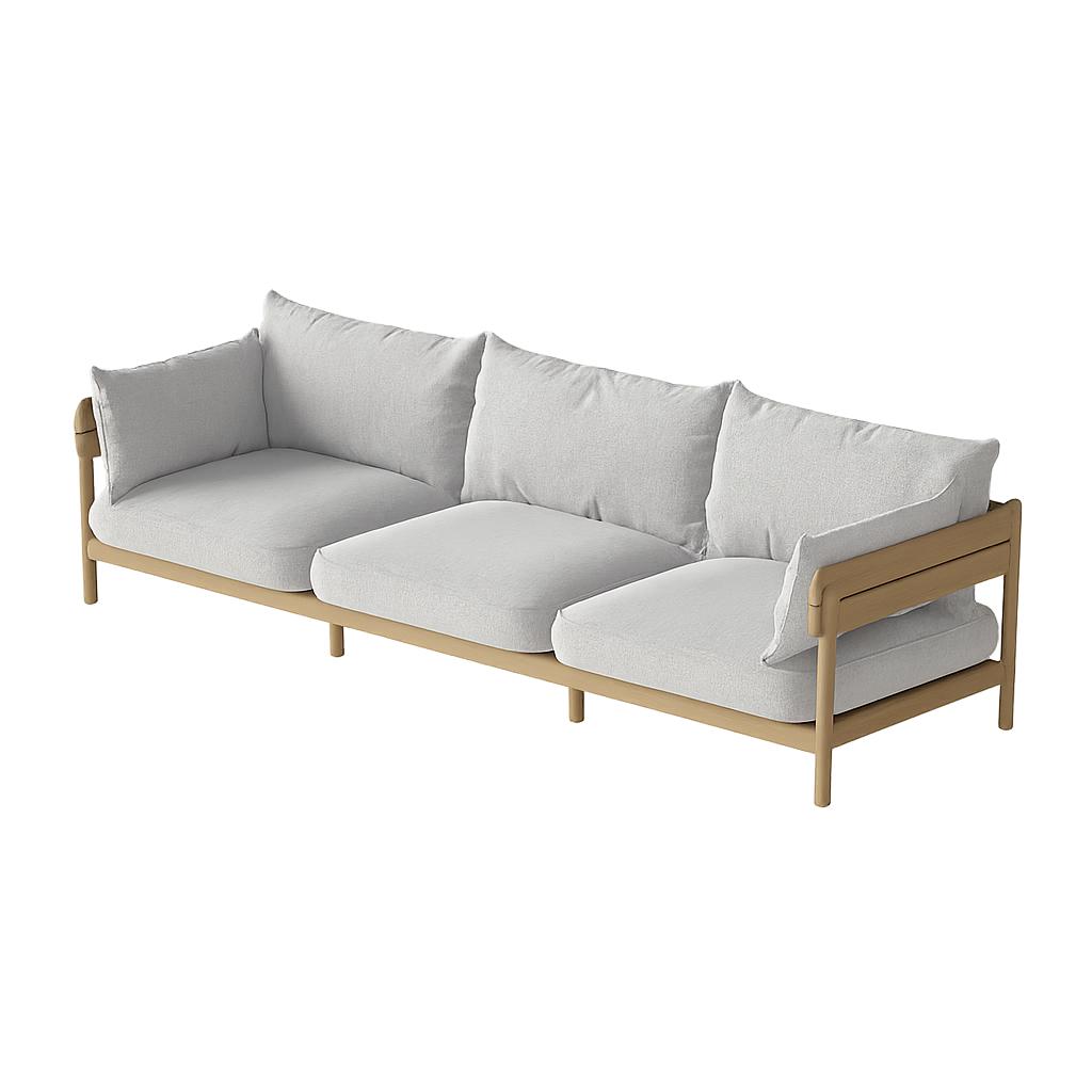 The Marlborough Sofa extends the architectural presence and inviting comfort of the armchair into a generous seating form. Defined by clean oak lines and deeply cushioned seating, it balances structural clarity with soft, enveloping comfort. Its proportions are designed for versatility, serving equally well as a focal point in a living room or as part of a larger interior ensemble.